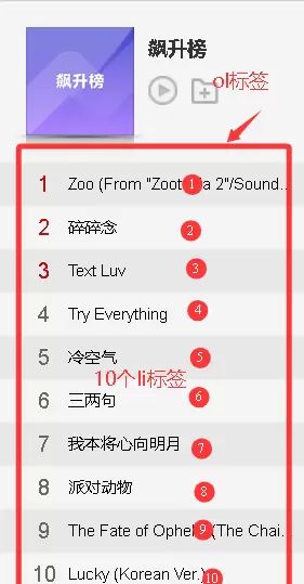 而有序列表(ol)更多用于需要体现排名或顺序的页面布局。典型案例如网易云音乐的歌曲排行榜,通过数字序号清晰地呈现歌曲名次,增强信息的可读性与逻辑性。