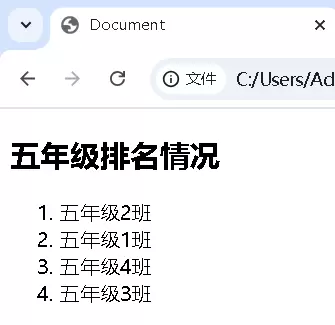 与无序列表相对,有序列表适用于需要体现排列顺序的内容,比如排名、步骤或流程等。它由 ol 和 li 两个标签共同构建。