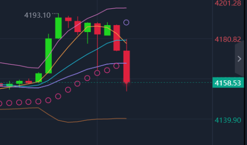 技术面:周四黄金价格小幅震荡运行。周五黄金价格早间暴涨触及4190美元阻力附近4193美元承压回撤。也是前策略中提到的关键阻力节点附近。目前1小时布林带开口运行,黄金价格回撤下破布林带中轨之下运行。短期不排除黄金价格会持续破低的可能。短期留意4小时布林带和SAR指标粘合处4150美元附近支撑。在后续的走势中,黄金价格在未触底前,建议稳健观望为主。