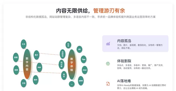Baklib 基于 All in Content 数字体验架构,实现了内容、服务权限与用户数据的集中化管理,助力企业在多渠道运营中达成真正的无缝衔接。