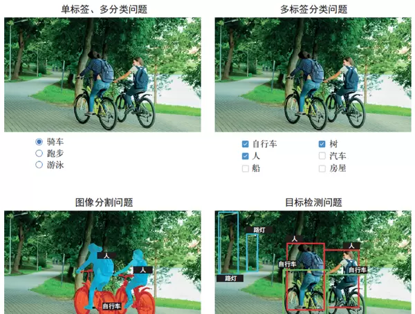 实例分割在此基础上进一步细化,不仅要识别类别,还需区分同一类别下的不同对象实例。例如,当图像中有两只猫时,模型会分别标记为“猫1”和“猫2”,实现个体级别的分离。如图9-2所示,这种方法提供了更高的空间解析精度。