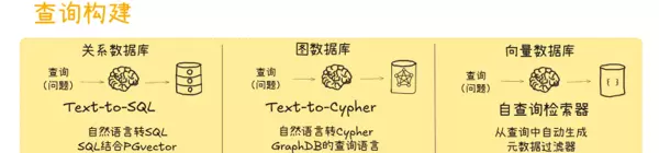 - 结构化查询生成:将提取到的信息分别处理——核心语义转为向量检索的查询字符串,元数据条件则转换成数据库可识别的过滤表达式,如将“评分高于 8 分的科幻电影”转化为 “genre = 科幻 AND rating>8”。