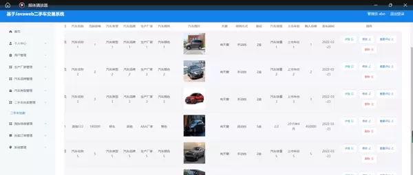 - 生产厂家与品牌管理模块:由后台管理员维护汽车生产厂商及其所属品牌的增删改查,为车辆信息发布提供标准化数据支持。
