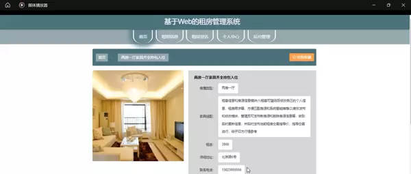 - 租房信息管理:房东填写房屋详情(位置、面积、租金、配套设施等),租客可根据条件筛选目标房源。