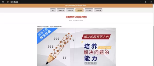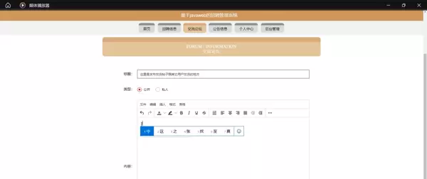 招聘信息模块:提供按职位类型、工作地区、薪资范围等条件筛选功能,展示详细的岗位描述,提升信息获取效率与匹配精度。