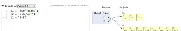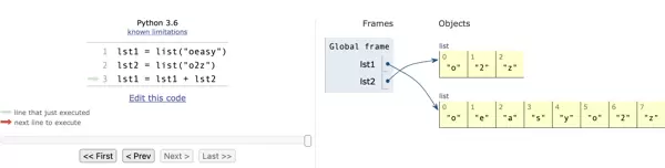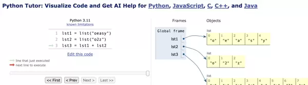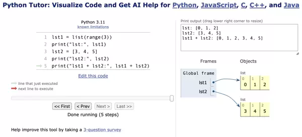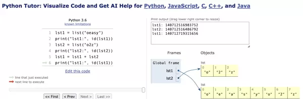 通过在线可视化工具(如 Python Tutor)可以清晰地观察这一过程: