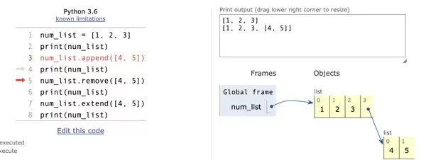 extend 正是列表的一个成员方法,专门用于将一个列表的元素逐个添加到另一个列表末尾。
