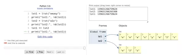 - 使用 lst1 = lst1 + lst2:生成一个位于新地址的新列表。