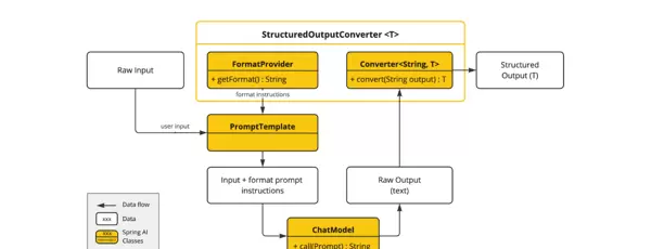 - 调用后处理:当模型返回文本后,转换器会接管输出,将其解析并映射为目标结构化类型实例,如 Java 类、集合或键值对结构。