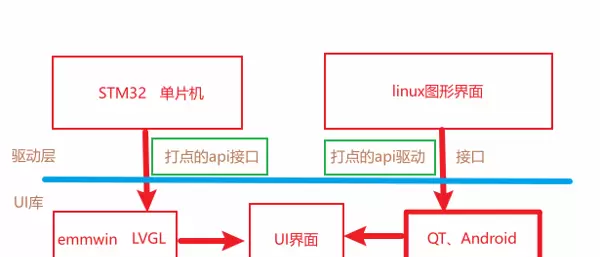 在嵌入式Linux系统中,LCD驱动的实现主要围绕“打点”与“读点”操作展开。通过直接操控显存中的像素数据,可以实现对屏幕内容的精确控制。为了构建更加丰富的用户界面,通常会在此基础上引入GUI图形库,从而支持更复杂的UI设计。