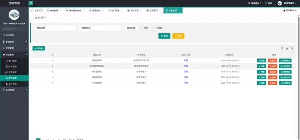 系统设有超级管理员、基础数据管理员、仓库管理员等多种角色,所有角色的创建及权限分配均由超级管理员统一管理。
