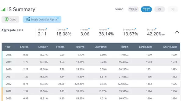 经过调整后,该alpha成功通过校验,具备提交条件。