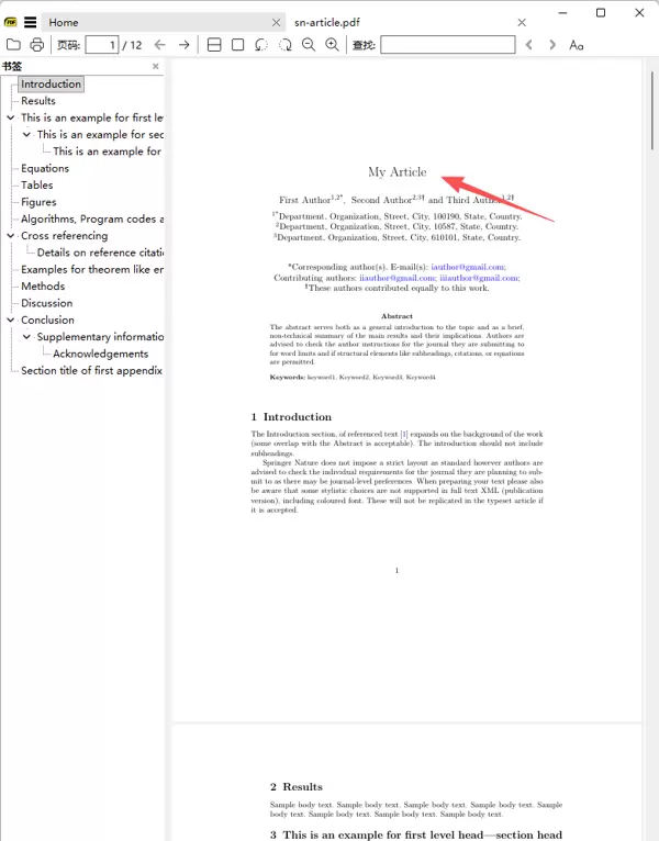 sn-article.tex 文件,开始配置与撰写。