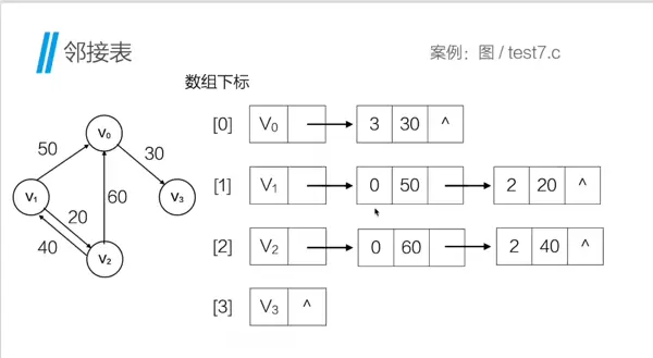 以一个具体示例说明:设有 4 个顶点(编号 0 至 3,对应四个路口),并存在如下 5 条带权有向边:1→0(权重 50)、2→0(60)、0→3(30)、1→2(20)、2→1(40)。这样的结构就是一个典型的带权有向图。接下来的问题是:如何高效地存储这种顶点与边之间的复杂关系?答案便是“邻接链表”。