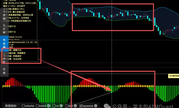 - 挤压状态识别:包括“进入挤压”、“持续挤压”、“突破挤压”、“趋势延续”等阶段划分;