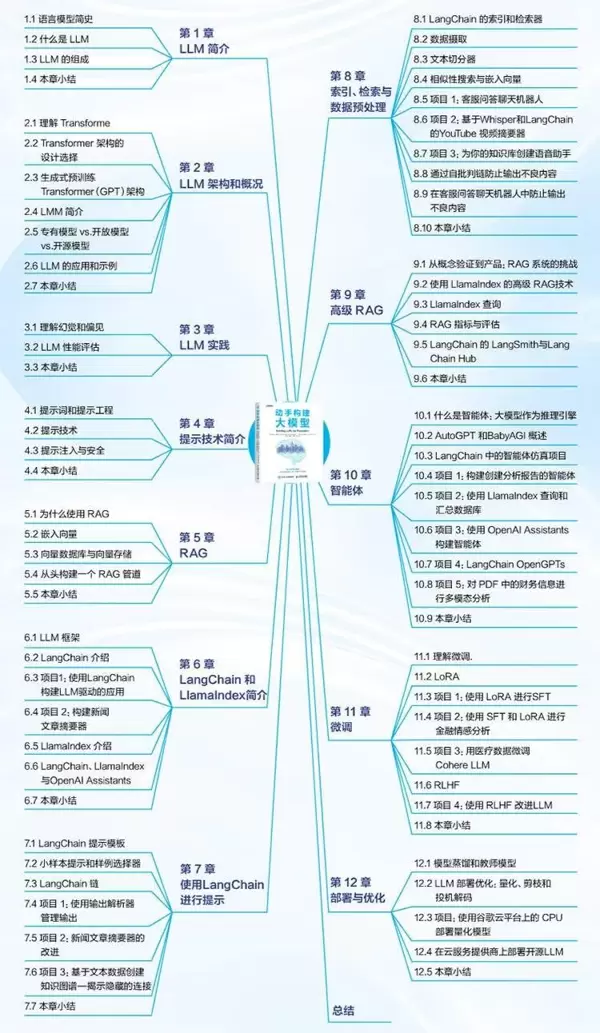 内容从基础知识讲起,逐步深入到 Transformer 架构的核心原理,解析这些模型的训练过程,并指导读者如何通过提示技术与其高效交互。随后,视角转向工业级应用,重点介绍两个广泛应用的框架——LlamaIndex 和 LangChain,它们是构建 RAG 系统的关键工具。书中设置了多个项目案例,鼓励读者亲自动手实践,从而加深对理论的理解和掌握。
