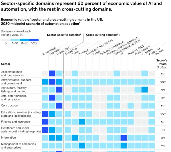 工作流是企业运作的骨架,涵盖信息传递、决策制定等一系列环节。麦肯锡分析了美国经济中的190个业务流程后发现,60%的潜在价值集中在特定行业的核心领域,比如制造业的供应链管理、医疗领域的临床诊断以及金融系统的风险控制。