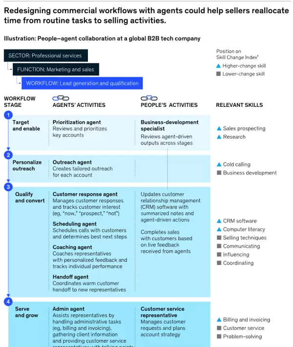 角色因此发生转变:人类销售不再是推销员,而是升级为谈判专家与关系构建者,专注于定制化提案和解决客户疑虑。结果是年收入提升了7%至12%,同时销售人员从繁琐事务中解放出30%至50%的时间。