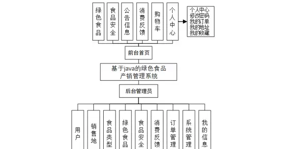 通过对绿色食品产销管理系统进行全面的功能分析,可以构建出系统的功能模块结构,其整体架构如图4-1所示。