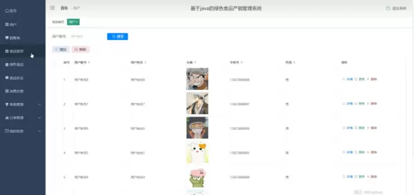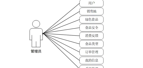 管理员端主要面向系统管理人员,提供对平台整体运行的掌控能力。其核心功能包括对用户信息、销售区域、食品分类、绿色食品资料、食品安全事件、用户反馈内容的管理,以及订单处理、系统配置和自身信息维护等操作。管理员可通过后台完成查看、编辑、删除等多项管理任务,全面掌握系统运作情况。