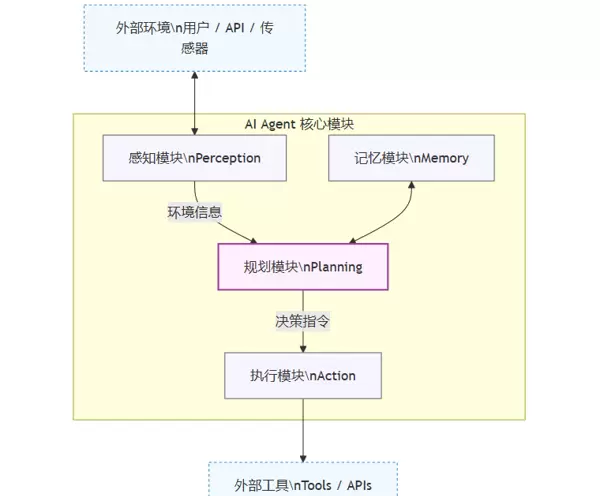 一个典型的AI Agent系统通常由多个核心模块构成。理解其内部结构,是把握其能力边界与发展潜力的基础。