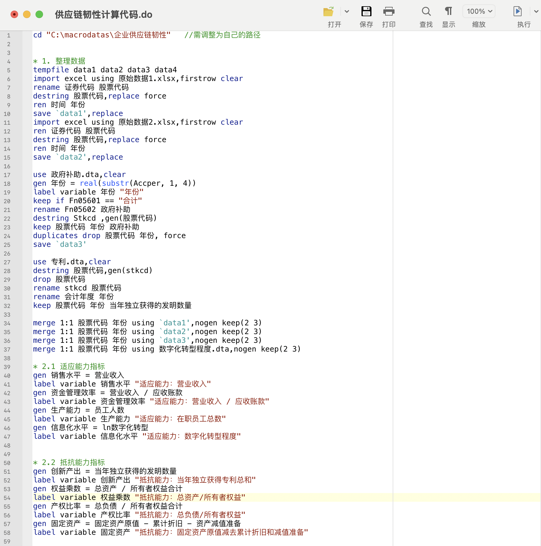 数据名称:上市公司供应链韧性数据-原始+dofile+结果