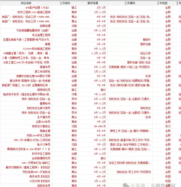 - 岗位基本信息:岗位名称、招聘类别、招聘人数、工作类型、工作区域、工作地点、职位地址、经度、纬度