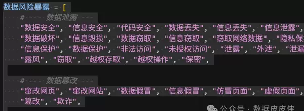 注:其余“数据风险暴露”相关的关键词已整合至txt文档中,具体如下图所示:
