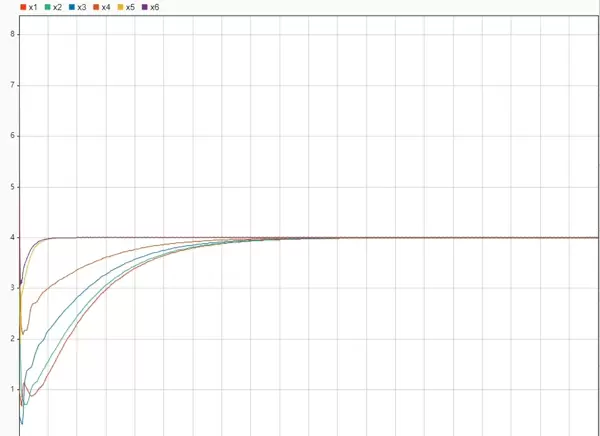 - 场景一:领导者状态设定为4,观察跟随者是否能收敛至该值;