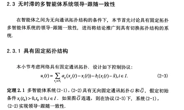 控制输入 u 的设计是实现一致性的关键环节。依据所提协议,每个跟随者的控制量取决于其与邻居智能体之间的状态差异。通过引入Laplacian矩阵来刻画网络中的信息交互关系,从而实现分布式协同控制。