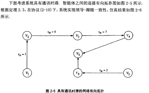 随后,在有向通信拓扑场景中,进一步探讨了存在通讯时滞情况下的一致性行为。理论分析表明,系统的最终一致性结果不受跟随者间通信时延的影响。该结论通过多组仿真实验得到了有效验证。