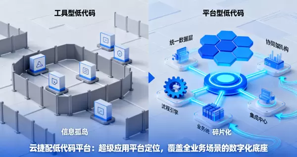 云捷配低代码平台正是基于这一理念设计,定位为“超级应用平台”,致力于打破工具局限,打造覆盖企业全业务环节的数字化底座。