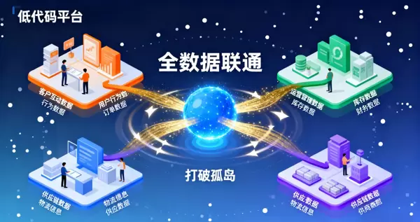 当前企业普遍面临“数据分散”与“流程割裂”的挑战:CRM 中的客户信息、OA 中的人事记录、ERP 中的采购数据彼此孤立,重复录入和手动流转消耗大量人力。平台型低代码通过一体化架构有效破解此类难题。