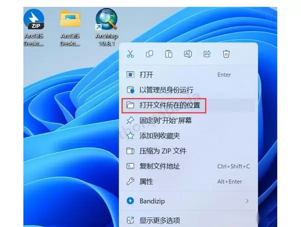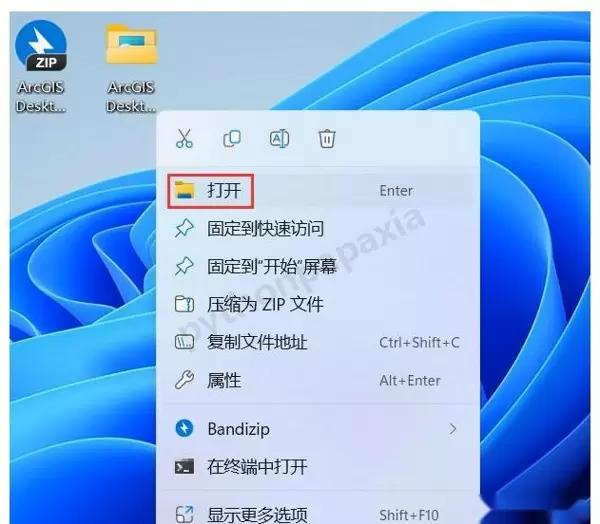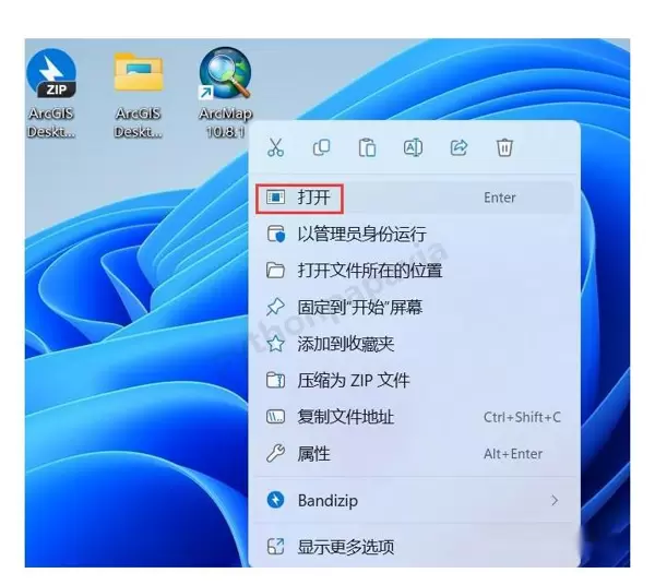 22. 返回桌面,右键点击【ArcMap 10.8.1】快捷方式,选择【打开】,尝试首次启动程序。