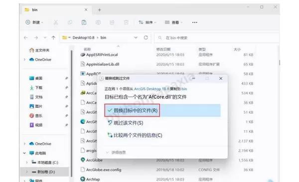 21. 出现覆盖提示时,选择【替换目标中的文件】,完成关键文件更新。