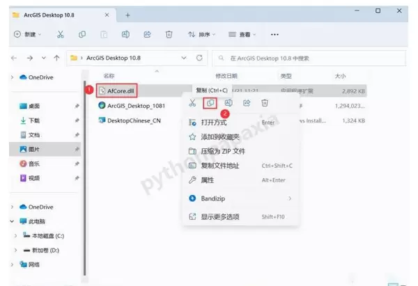 17. 返回原始解压文件夹,定位到【AfCore.dll】文件,右键选择【复制】,该文件对软件正常运行至关重要。