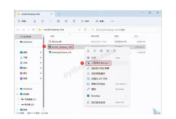 3. 在文件夹内找到名为【ArcGIS_Desktop_1081】的安装程序,右键并选择【以管理员身份运行】,以避免权限不足导致的安装失败。