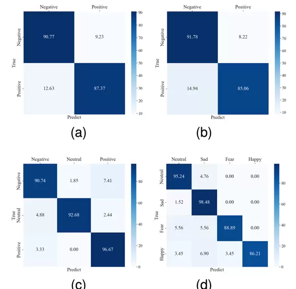 实验发现,模型对负面情绪(如悲伤、恐惧)具有更高的识别敏感度,这一现象与情感神经科学领域的已有研究成果相一致。