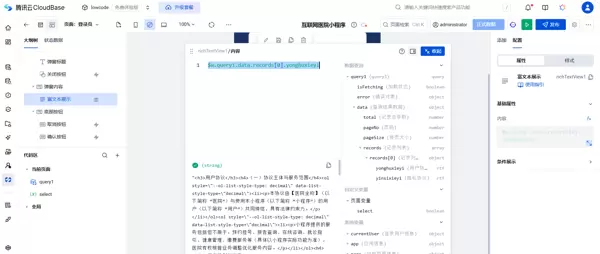 将富文本组件的数据源绑定至查询所得的隐私协议字段。