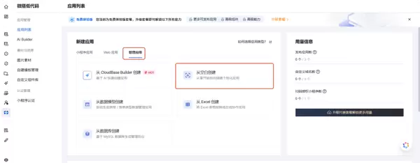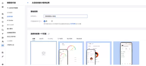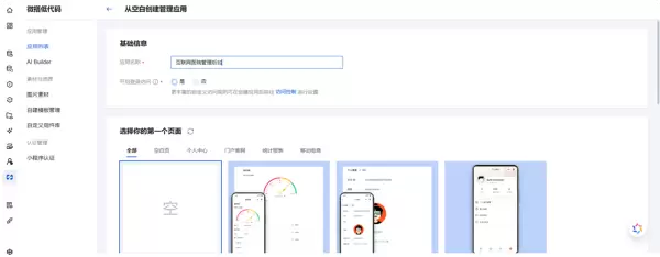 首先,在微搭中切换至“管理应用”模块,选择从空白模板创建新应用。
