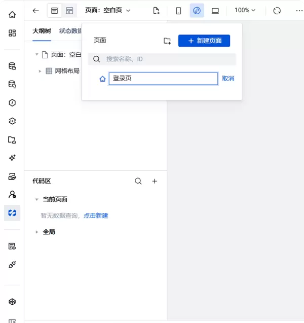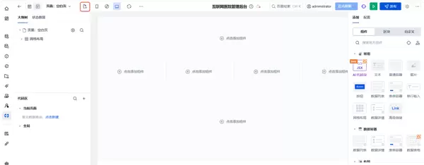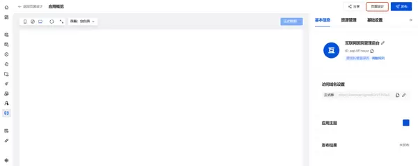 创建完成后,点击右上角“页面设计”按钮,进入可视化设计模式。