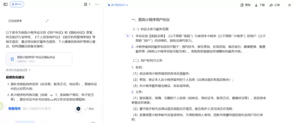 借助豆包等辅助工具生成标准格式的用户协议与隐私协议文本内容。