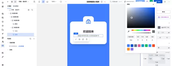 继续添加另一文本组件,并设定文字颜色以符合界面视觉要求。