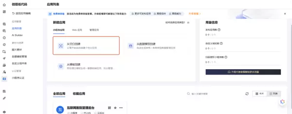 切换至“小程序应用”模块,点击“从空白创建”启动新项目。