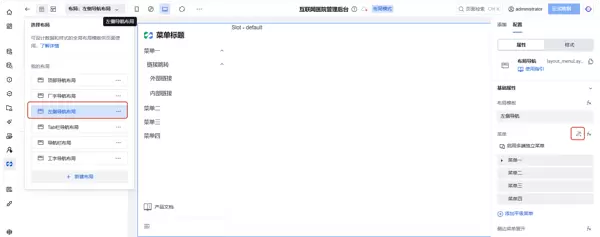 选择左侧导航布局,并在右侧点击“一键生成菜单”快速生成菜单结构。