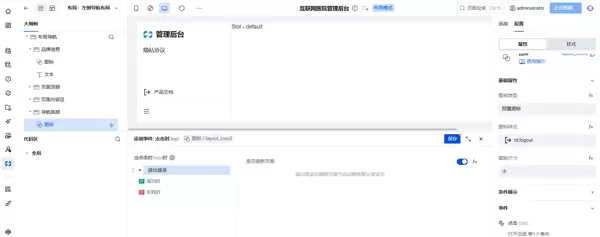 返回页面设计界面,选中主组件并设置整体布局为“左侧导航布局”。
