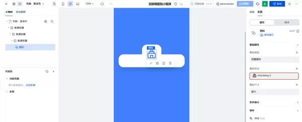 在该容器内插入图标组件,并选择“大楼”类图标作为视觉标识。
