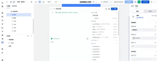 对于未选中状态的圆形图标,设置其条件渲染逻辑,使用该变量的取反值进行判断。