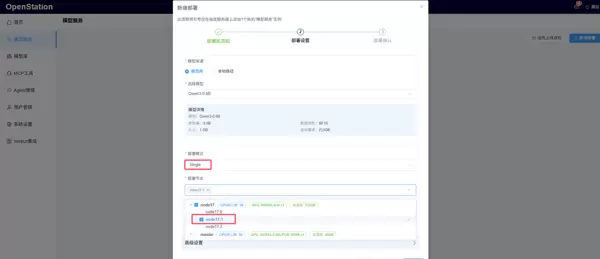 传统部署方式中,旧版 OpenStation 仅支持整机级别的资源分配,导致明显的资源浪费——例如运行 7B 参数模型本只需单张 GPU 卡,却不得不独占整台设备。新版本引入 GPU 精细化调度机制,支持在单机或分布式环境下按需分配具体加速卡资源,开发者可通过图形界面精确指定使用某一张或多张 GPU 卡,极大提升了硬件利用率。