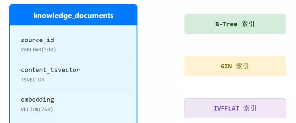knowledge_documents 表中的 content_tsvectortsvector 字段创建 GIN 索引,显著提升关键词搜索效率。